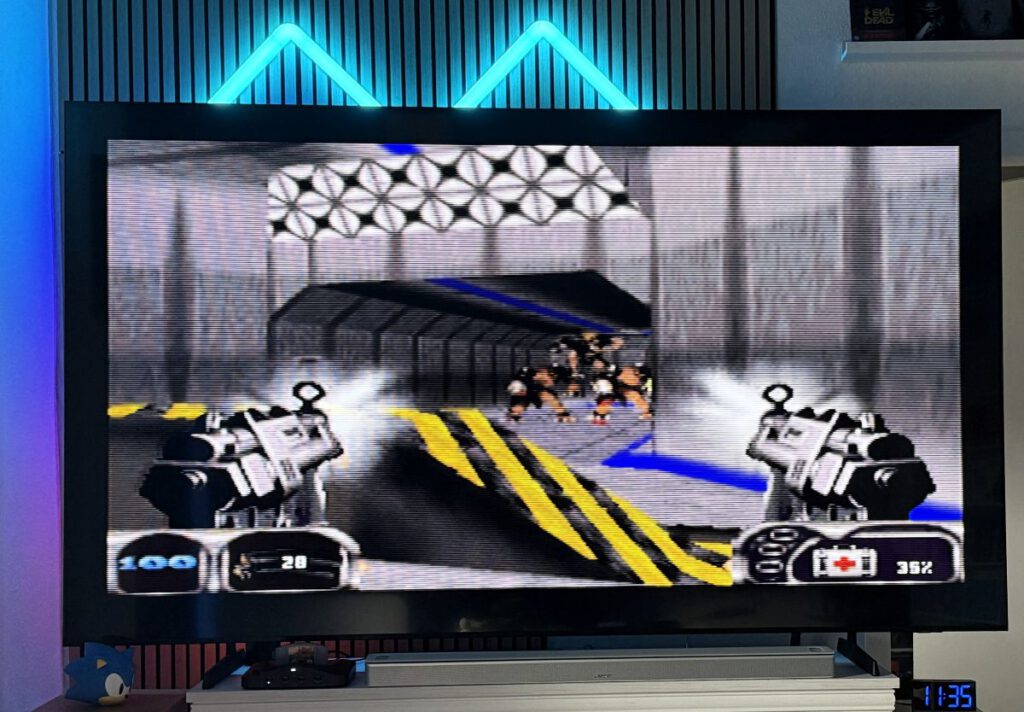 Im Gegensatz zur Originalkonsole ist kein Adapter bzw. Scaler und kein Umbau notwendig – das Analogue 3D kann direkt via HDMI an moderne Ausgabegeräte (TV, Monitor, Beamer, etc.) angeschlossen werden. Eventuell muss vor der ersten Inbetriebnahme noch ein Update durchgeführt werden (war bei meinem gebrauchten Gerät schon eingespielt) und dann geht es schon los.